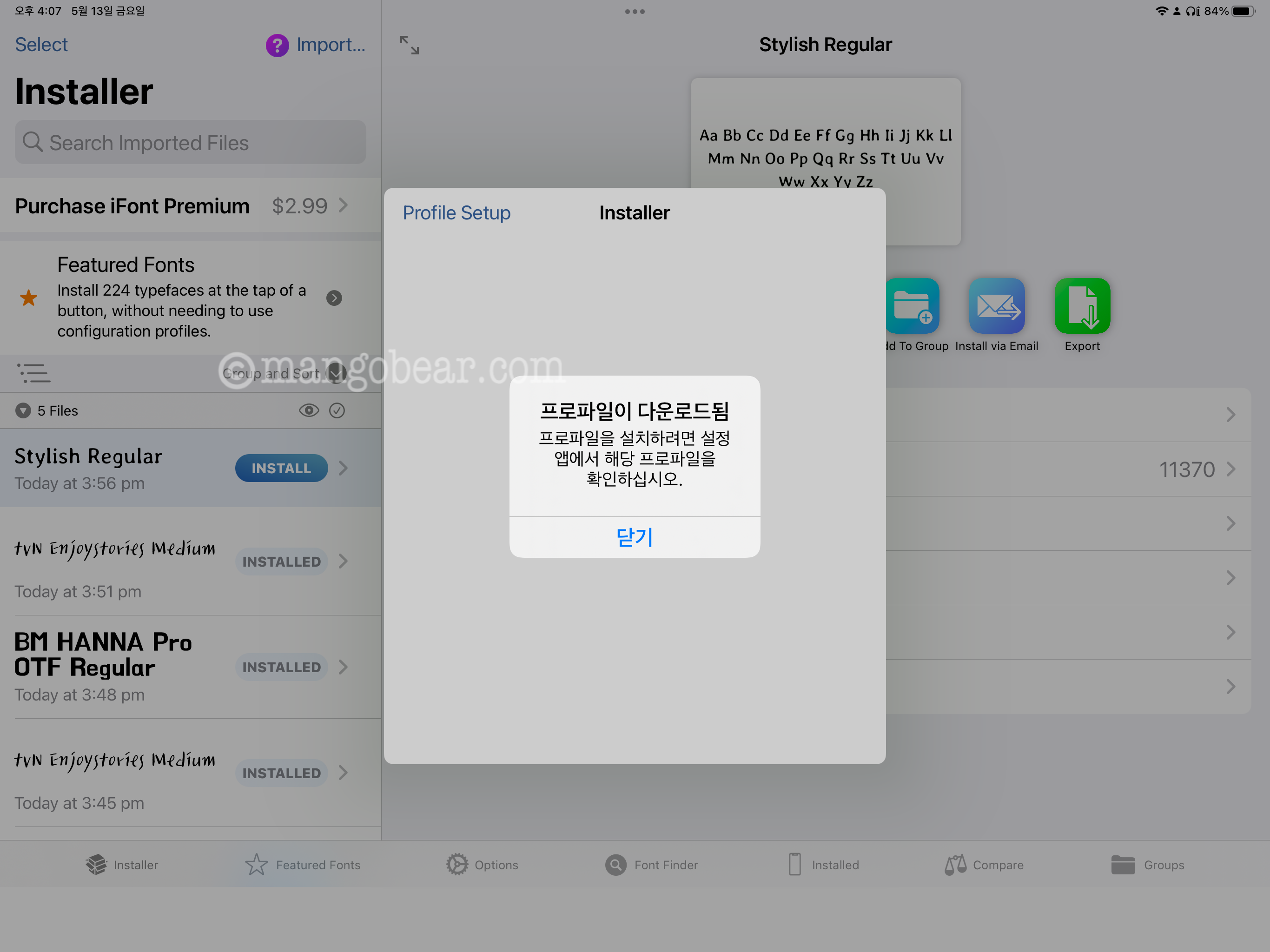 폰트 설치앱은 여러 종류가 있으니, 다른 무료나 유료앱을 이미 가지고 있다면 그것을 이용해서 서체를 설치해도 된다.